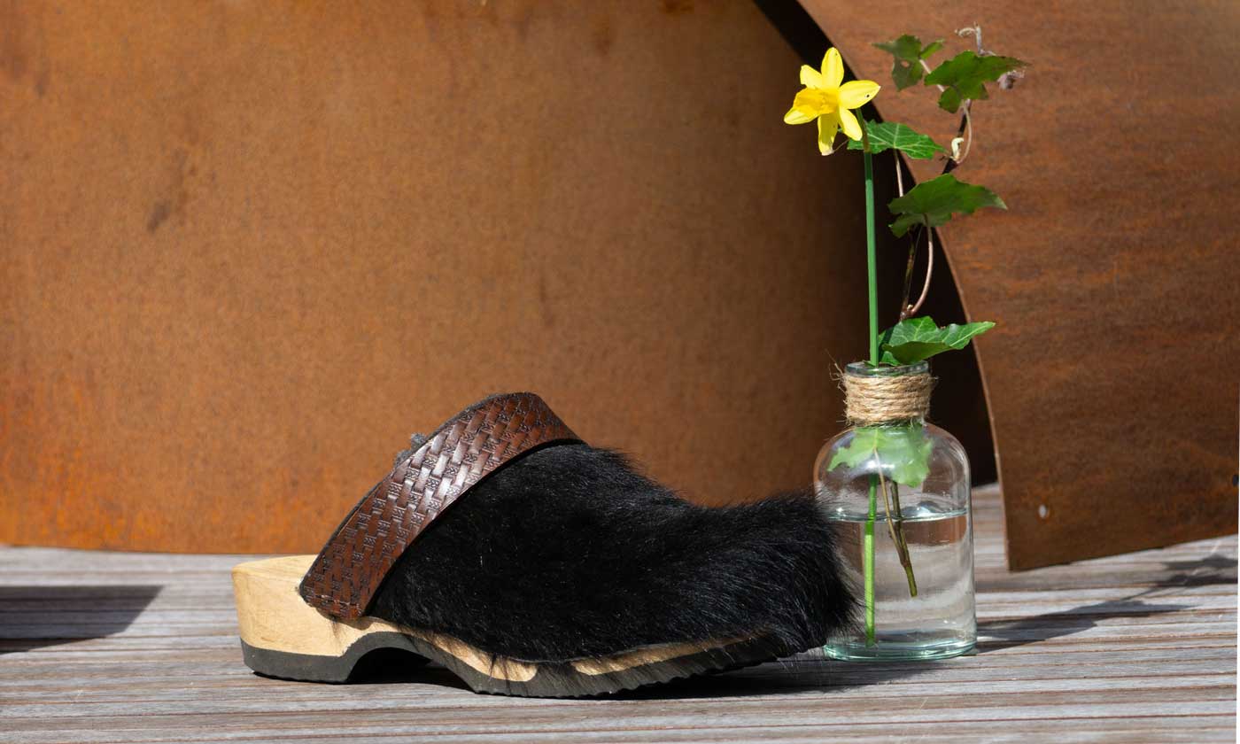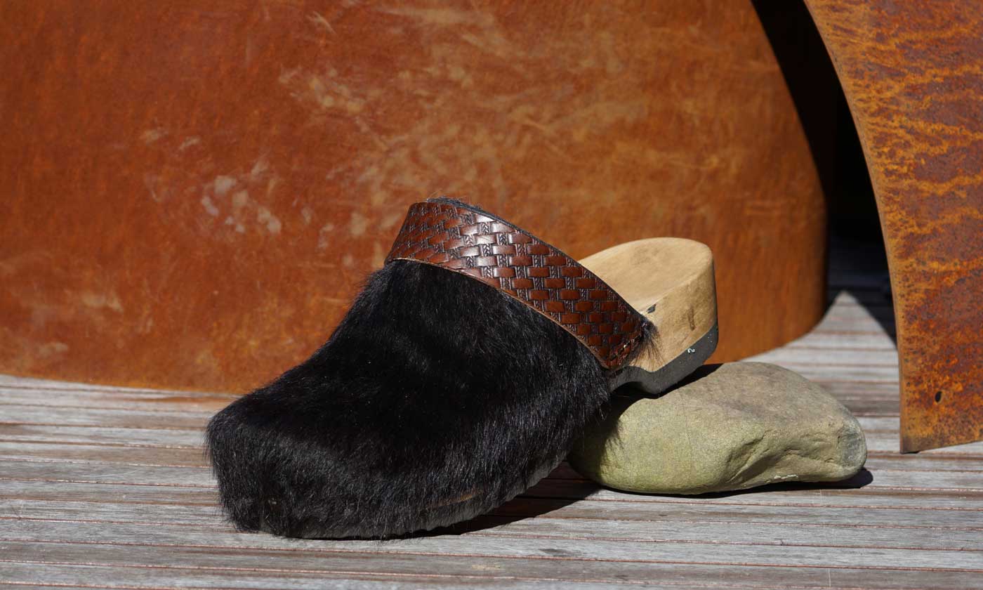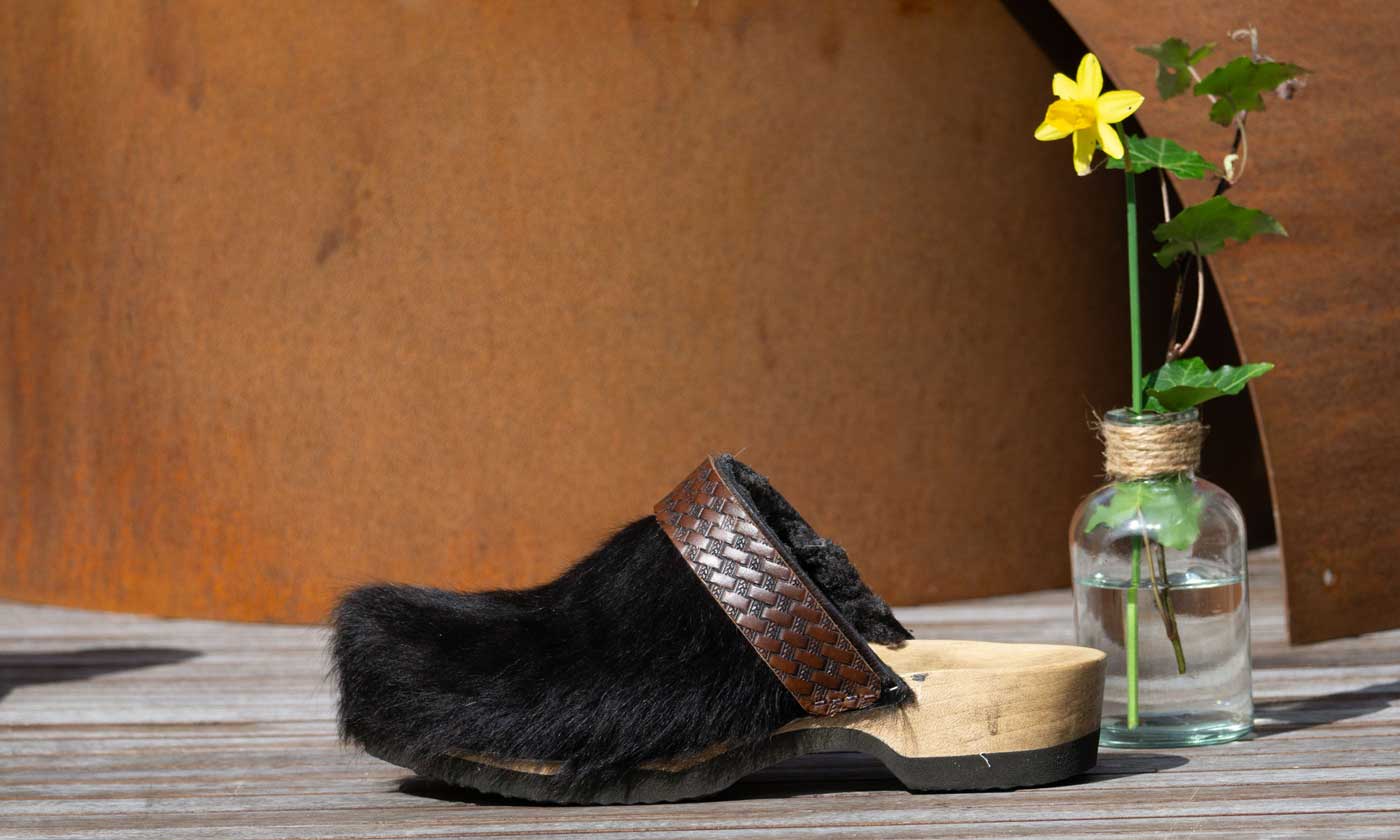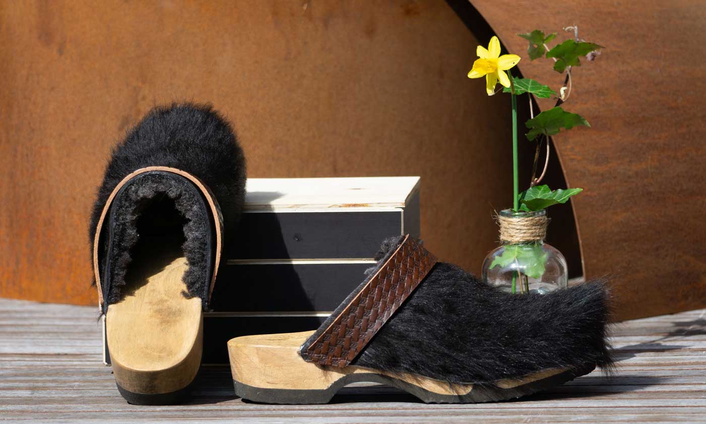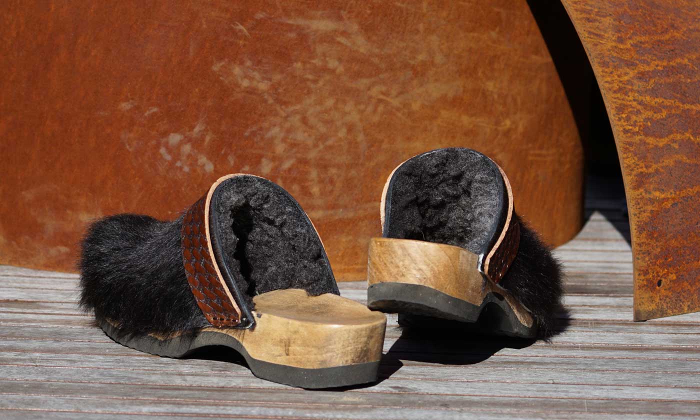 Auch dieses Paar MuhSchuh-Fellclogs wurde in unserer Werkstatt in Meckenbeuren von Hand gefertigt.