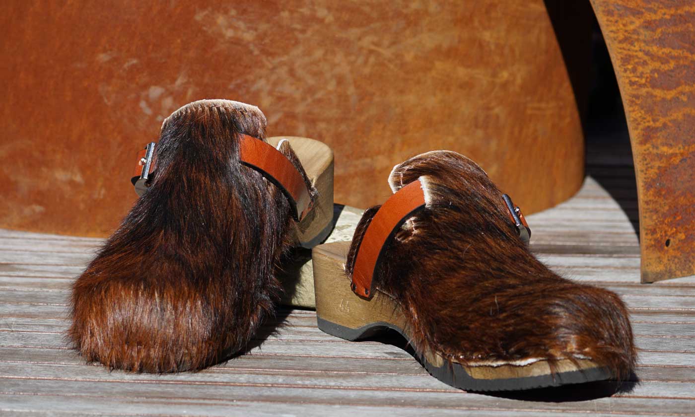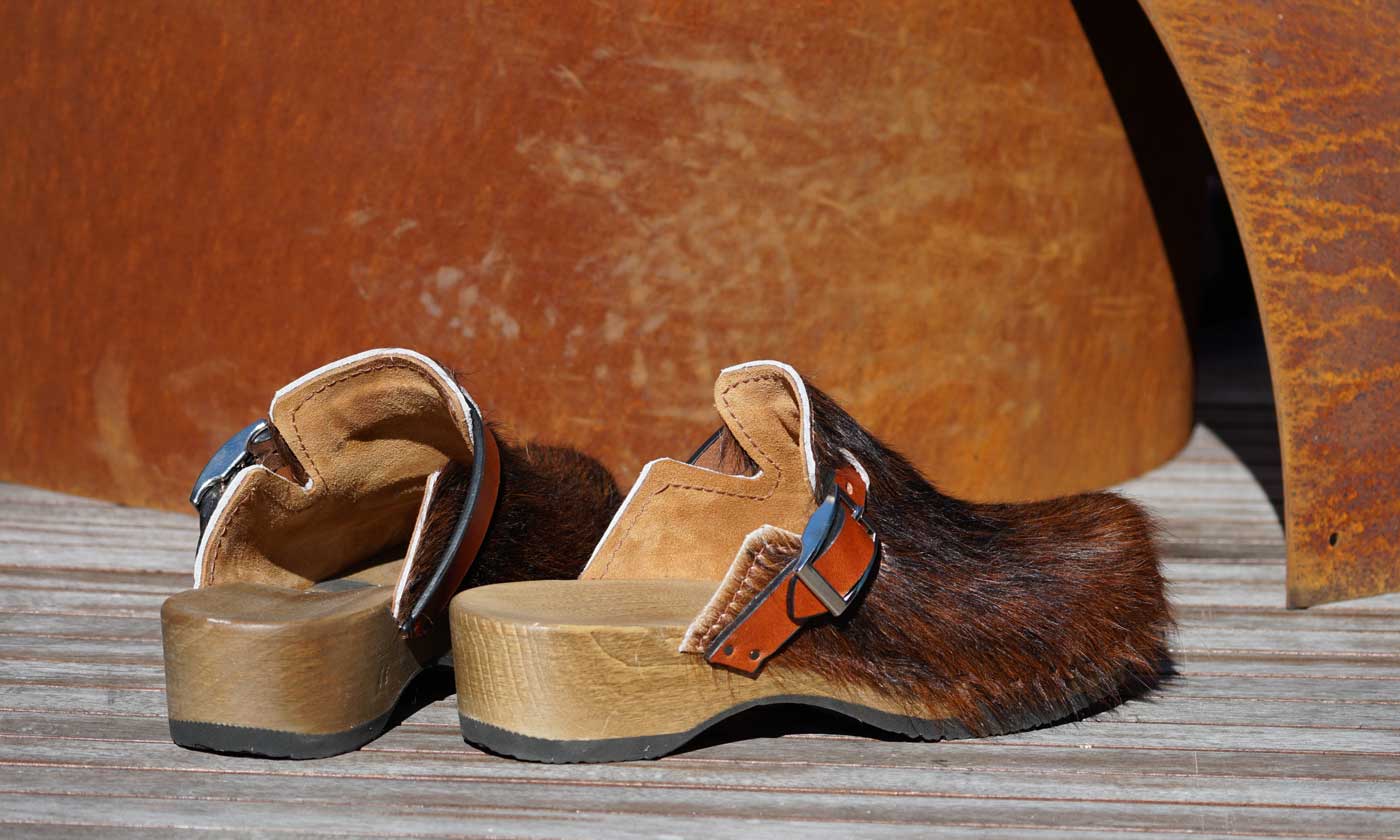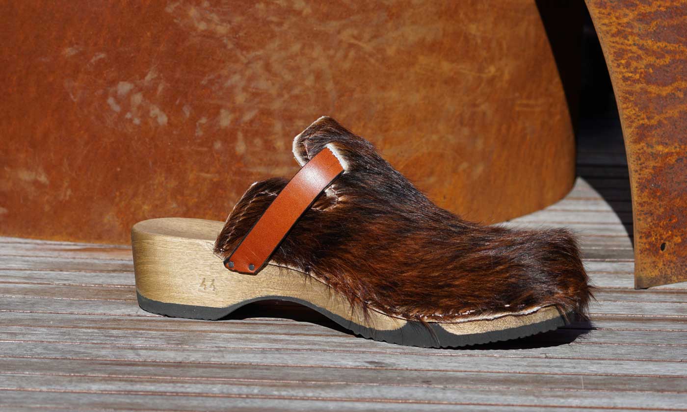 Dieses Paar MuhSchuh-Fellclogs wurde in unserer Werkstatt in Meckenbeuren von Hand gefertigt.